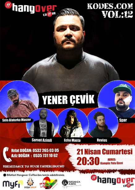 Sakarya da yeni bir konser ile karşınızdayız. Türkçe Rapin saygın isimlerinden biri olan Yener Çevik ve Kadıköy Acil grubundan Selo ilk defa Sakarya da sahne alacak.  Yanı sıra Sakarya nın en sevilen Mcleri Spar, Echo Masta ve Revios da bu önemli günde performans sergileyecektir.